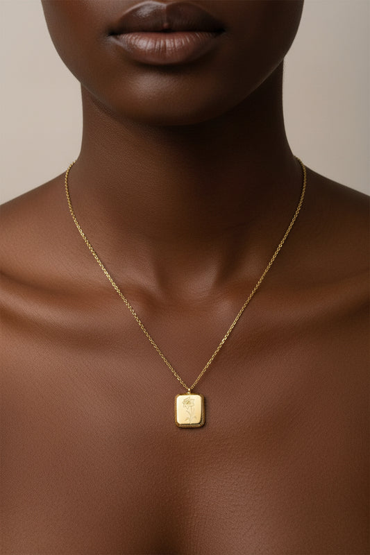 11 Vintage Engrave Square Flower Pendant Necklaces | Patterson Jewelry