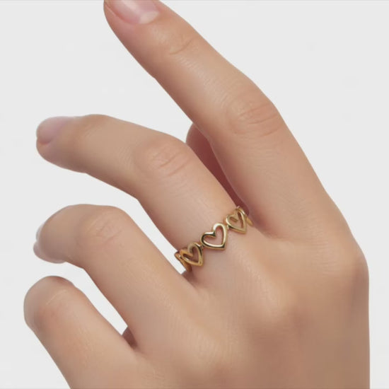 Add some love to your jewelry collection with our Hollow Heart Ring! Made of high-quality 18K gold-plated stainless steel, this ring features a beautiful hollow heart design. Perfect for any occasion, it will add a touch of elegance and style to your outfit. Make a heartfelt gift for your loved ones!